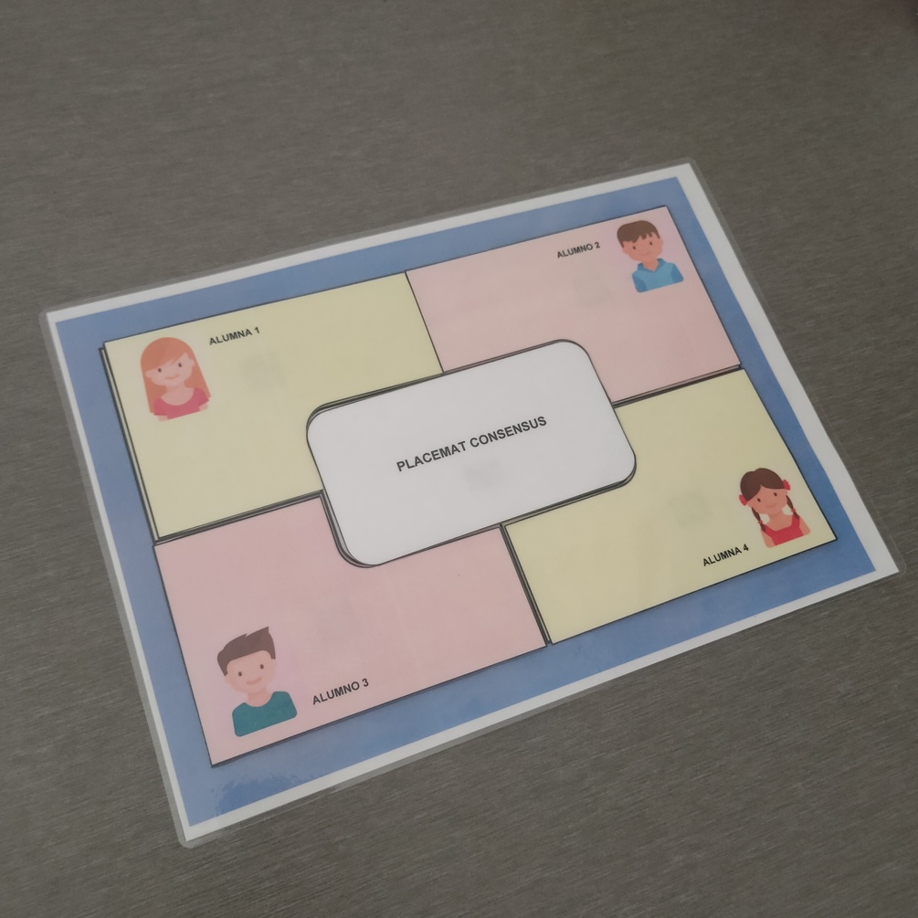 Hello! I share this template that I have designed to work with our students on the cooperative technique "Placemat Consensus". If you do not know it, it is a very motivating dynamic that consists of the following steps: